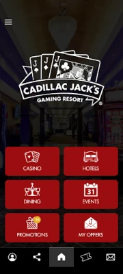 La app de Cadillac Jack's® Gaming Resort ofrece acceso instantáneo a promociones emocionantes, reserva de estadías, horarios de entretenimiento en vivo y ofertas especiales. Para los Miembros del Cadillac Club, la experiencia se vuelve aún más gratificante.