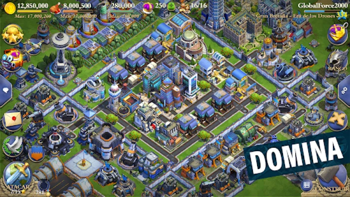 La evolución nunca se detiene. Tu imperio se enfrentará a desafíos cada vez mayores a medida que progresas, culminando en la innovadora Era de los Drones. Fortalece tus defensas y entrena nuevas tropas con tecnología de vanguardia para asegurar tu supremacía en este campo de batalla futurista. Mide tu destreza militar en emocionantes combates PvP contra jugadores globales o forja alianzas estratégicas para dominar el tablero mundial. En DomiNations, la cooperación y la confrontación son las claves para la victoria definitiva.