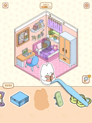 En **My Sticker Room**, la diversión es tan sencilla como gratificante. Cada nivel se despliega como una nueva escena esperando ser completada: desde acogedoras cafeterías hasta hogares llenos de vida para nuestros adorables amigos peludos. Desliza y pega tiernos gatitos, conejitos y una miríada de objetos decorativos que transformarán espacios vacíos en vibrantes ilustraciones. Olvídate de la ansiedad de elegir; aquí, la satisfacción reside en ver cómo cada sticker encuentra su lugar perfecto, creando ambientes llenos de alegría y encanto sin esfuerzo.