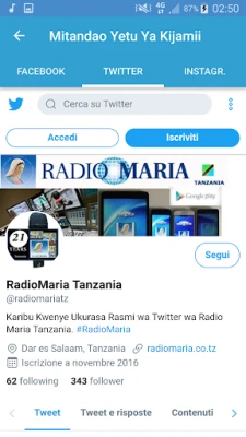 Radio Maria Tanzania: emisora cristiana líder en Tanzania desde 1996. Comenzó humilde y ahora cubre gran parte del país con 12 frecuencias. Reconocida como la radio eclesiástica número uno por su amplia cobertura y gran audiencia.