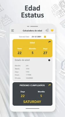 Diseñada con una interfaz de usuario intuitiva y despejada, la experiencia con esta herramienta es siempre fluida y sin complicaciones. Olvídate de cálculos manuales o de la frustración de olvidar fechas cruciales; la **calcula tu edad rápidamente** es tu solución definitiva. Y si deseas compartir con tus amigos la precisión de tu edad o cuánto falta para tu próximo festejo, la aplicación facilita la difusión de estos detalles a través de tus plataformas sociales favoritas. Con esta **aplicación de cuenta atrás de cumpleaños**, cada fecha se convierte en un evento anticipado con alegría y sin estrés.
