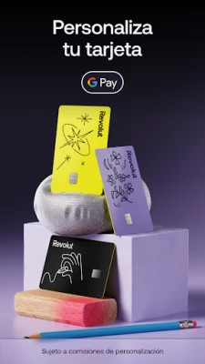 Revolut abre un mundo de posibilidades para una gestión de dinero inteligente y adaptada a tu estilo de vida. Con tu propia tarjeta de débito personal, puedes diseñarla a tu gusto con texto, pegatinas y tus propios dibujos (comisiones de personalización pueden aplicarse), o utilizar tarjetas virtuales que se añaden instantáneamente a Apple Wallet o Google Wallet para una flexibilidad de pago sin igual. Personaliza tu experiencia financiera y lleva tus métodos de pago siempre contigo, con la confianza que Revolut te ofrece.